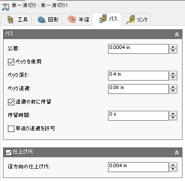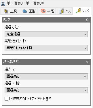 退避 Z 軸: ツールパス完了後の工具の配置を定義します。