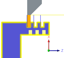 工具は、中心線から進入するか、中心線に退避し、径方向に加工します。 |