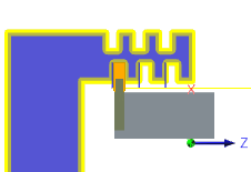 水色で表示され、切削領域の最大半径の境界を定義します。外側(外径)加工の場合、外側半径は、加工予定の外側ストックのサーフェスを定義します。内側(内径)加工の場合、外側半径は、切削領域の最大深さをコントロールします。