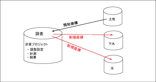 測量モジュールによって、測定値、計算の設定、結果が別々のデータベースのスキーマに保存されます。調整計算に必要な制御点は、サーバのインダストリ モデルに保存できます。新しい座標は、サーバ上のインダストリ モデルに分布できます。