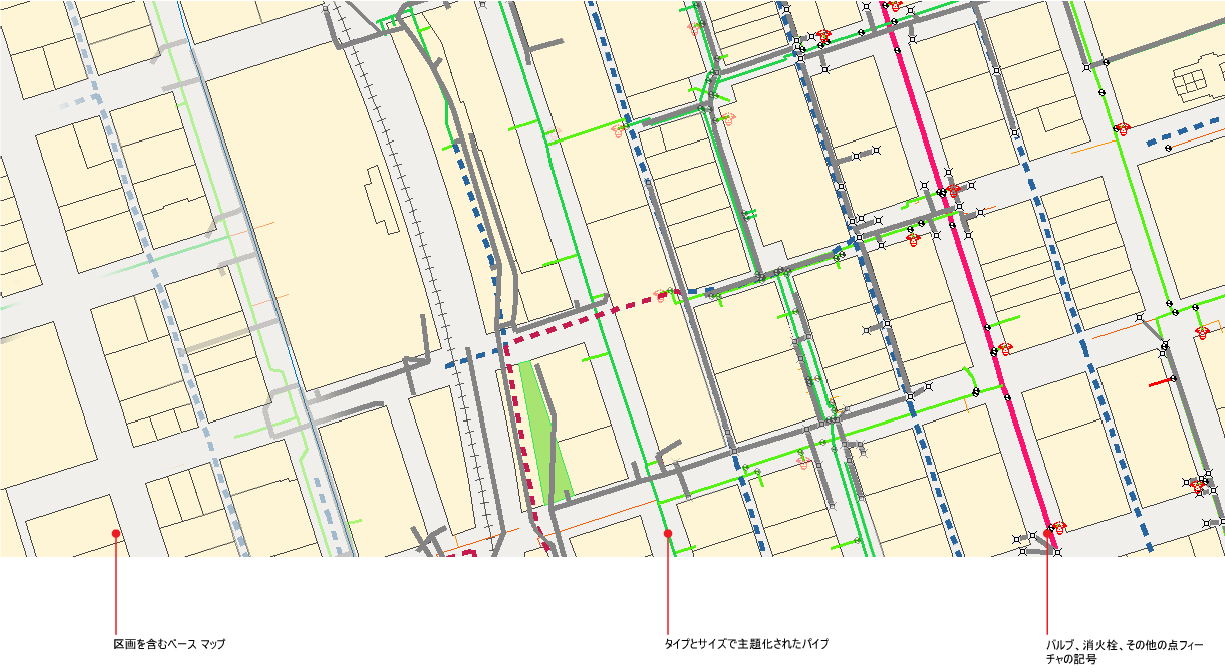 この給水システムのマップは、一連の SDF ファイルに保存されたフィーチャで構成されています。