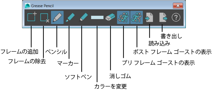 グリース ペンシル(Grease Pencil)ツールを開くには、パネル ツール バーでグリース ペンシル(Grease Pencil)アイコン