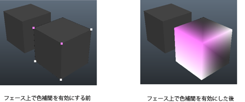 メタデータを視覚化するときに、カラーを視覚化方法として選択すると、頂点フェースを取り囲むフェースにもカラーを補外できます。この機能は、データがサーフェス全体にどのように分散しているかをよく理解するために役立ちます。