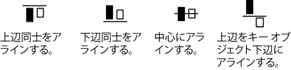 - アイコンをクリックしてオブジェクトを位置合わせします。アイコンは、バウンディング ボックスがどのように位置合わせされるかを表しています。例: