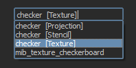 ノード エディタ(Node Editor)で[Tab]キーを使用してノードを作成する場合、目的の 2D テクスチャのタイプを入力すると、テクスチャの 3 つの種類(投影、ステンシル、テクスチャ)が表示され、3 つのマッピング方法から選択できます。Tab キーを使用してノードを作成する方法の詳細については、「ノード エディタ(Node Editor)でノードを作成する」を参照してください。