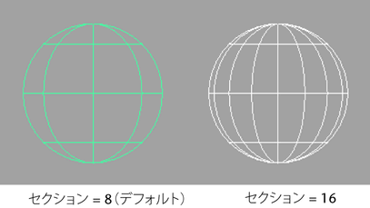 球上のセクション方向と交差する方向に作成されるサーフェス カーブの数を設定します。4 より小さい値では、不完全な球が生成されます。