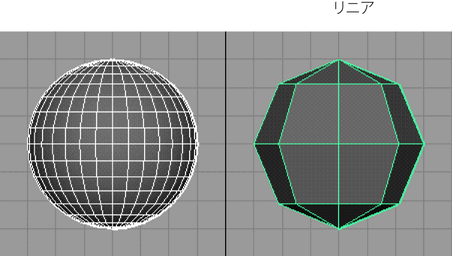 リニア(Linear)サーフェスは、ファセット化された外観を備えています。キュービック(Cubic)サーフェスは、丸い形をしています。サーフェス次数(Surface Degree)の詳細については、「次数」を参照してください。