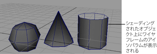 このオプションは、ビューに表示されているシェーディングされたオブジェクトすべてに、ワイヤフレームを重ねて表示します。