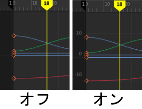 - オン(既定)の場合、グラフ エディタ(Graph Editor)でカーブを編集するに従って、類似する値を持つ隣接キーが自動的に位置合わせされます。類似する隣接キーを同じ値にスナップする場合は、このプリファレンスを有効化します。