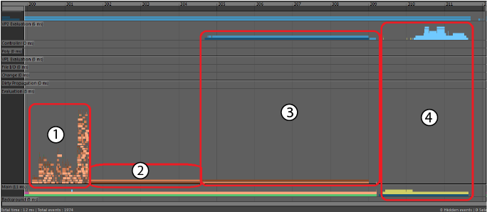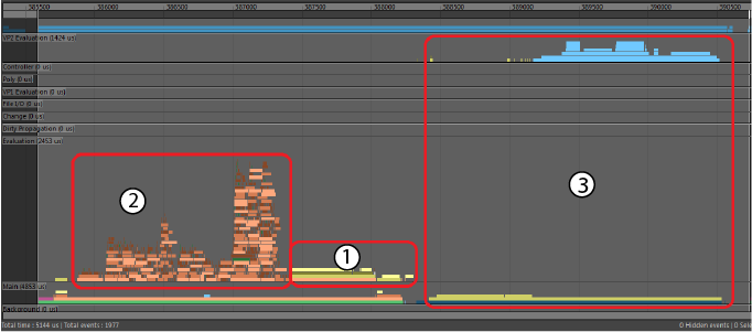 この例では、各フレームのかなりの部分がダーティー伝搬に消費されています。これは評価マネージャで対応できる問題です。