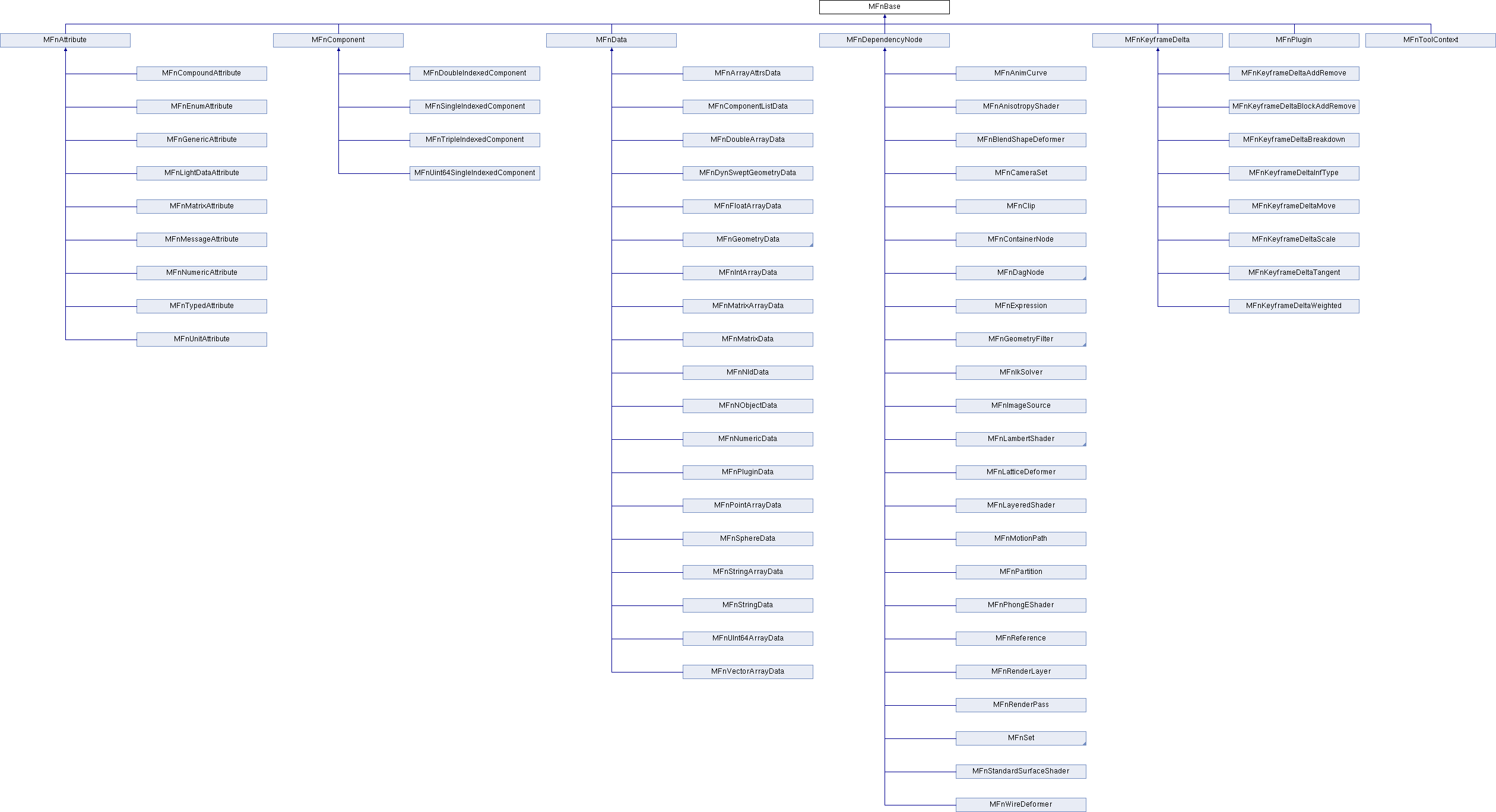Inheritance diagram for MFnBase:Public Member Functions | |