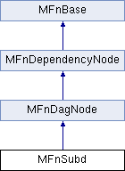 Inheritance diagram for MFnSubd:Public Member Functions | |