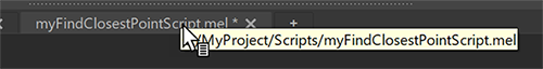 ファイルから MEL または Python スクリプトをロードするには、ファイル > スクリプトを開く(File > Open Script)を選択します。このファイルの新しいタブが作成され、このタブの名前がファイル名に変更されます。