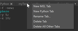入力(下部)ペインの MEL または Python タブでコマンドとスクリプトを入力します。