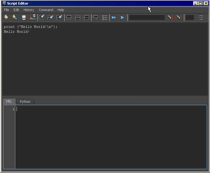 Maya のメイン ウィンドウの右下にあるスクリプト エディタ(Script Editor)ボタンをクリックするか、を選択してスクリプト エディタ(Script Editor)を開きます。