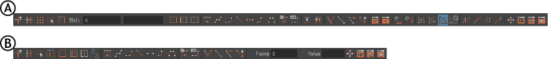 グラフ エディタ(Graph Editor)ツールバー: (A)既定、(B)簡易