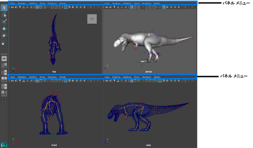 複数のビュー パネルを含むレイアウトを使用する場合、このメニューは各ビュー パネルで使用でき、パネルごとにオプションを調整することができます。