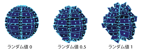 次に、0、0.5、1 のランダム値で押し出されたフェースの例を示します。