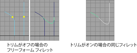 カーブ > フィレット(Curves > Fillet)を選択したときの動作を設定するには、次のオプションを使用します。
