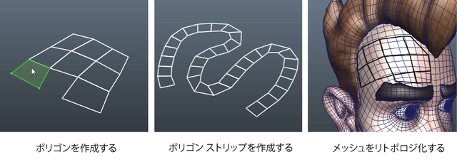 ツールは、新しいポリゴンを作成するだけでなく、既存のポリゴン メッシュを洗練するのにも使用できます。これには、次のものが含まれます。