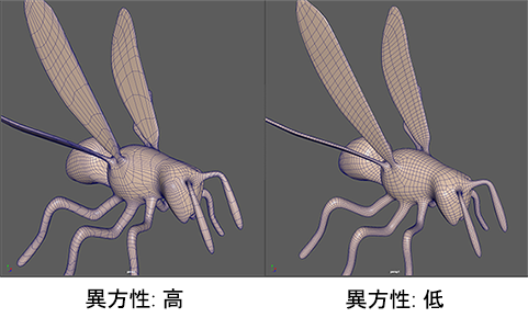 作成されたメッシュ上のフェースをソース サーフェス シェイプに合わせて収縮または伸長できる量を定義します。値が小さいほど、四角形のサイズは可変になり、オリジナル メッシュの曲率に正確に従うようになります。値が大きいほど、生成される四角形のサイズが規則的になります。