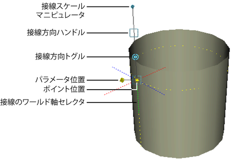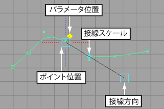 - カーブに沿ってマニピュレータを移動するには、パラメータ位置ハンドルをドラッグします。