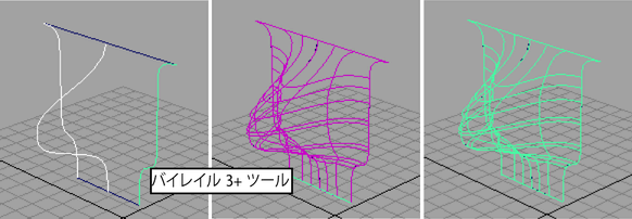 サーフェス > バイレイル(Surfaces > Birail) > バイレイル n ツール(Birail n Tool)