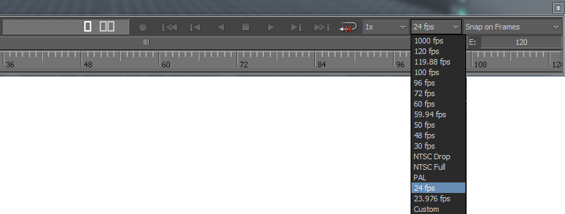 Time Format フィールドでフレーム レートが選択され、計測単位が変更されます。詳細については、「 Time Format メニュー」を参照してください。
