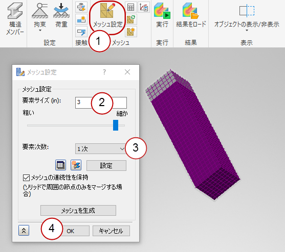 1. リボンの[メッシュ]パネルの[メッシュ設定]をクリックします。