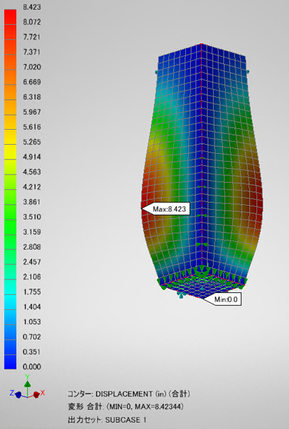 変位およびフォンミーゼス応力の両方の結果プロットで、タンクに問題があることが示されます。