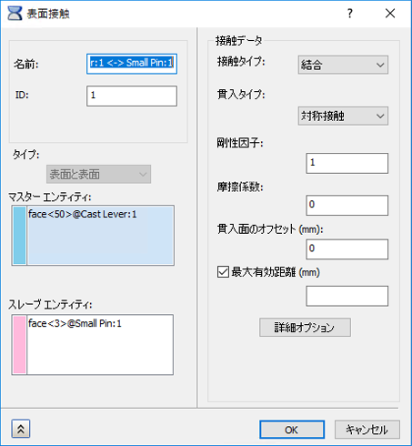 [表面接触]ダイアログ ボックスには、接触を定義するオプションが 2 つあります。