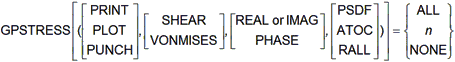 | PLOT | Grid point stresses will be output only to the results neutral file system. | Character | |