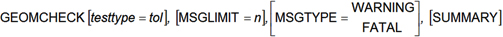 | FATAL | Geometry tests that exceed tolerance values produce fatal error messages. | Character | |