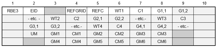 | REFC | Component numbers at the reference grid point. (Up to six unique digits may be placed in the field with no embedded blanks.) | 1 ≤ Integers ≤ 6 | Required |