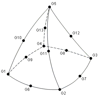 Description: Defines the connections of a five-sided isoparametric solid element with five to thirteen grid points.