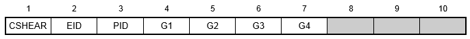 | PID | Identification number of a PSHEAR property entry. | Integer > 0 | Required |
