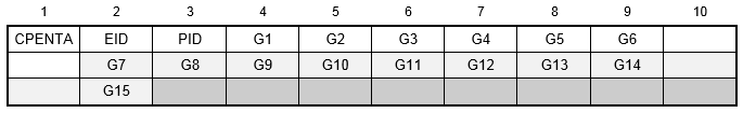 Description: Defines the connections of a five-sided isoparametric solid element with six to fifteen grid points.