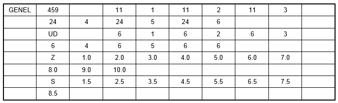 | Uli, Cli UDj, CDj | Identification numbers of coordinates in the UI or UD list, in sequence corresponding to the
