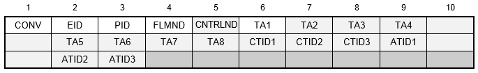 | CTID1, CTID2, CTID3 | TABLEDi set identification numbers that define control point position dependent scale factors in the x, y, and z directions of the basic coordinate system. See Remark 1. | Integer > 0 or blank | |
