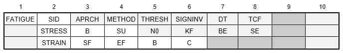 | APRCH | Fatigue life approach, one of the following character variables: STRESS, STRAIN, or blank. | Character | See Remark 2 | |||