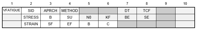 | APRCH | Fatigue life approach, one of the following character variables: STRESS or STRAIN. | Character | See Remark 2 | |||