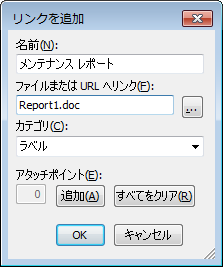 オプション: リンクは、既定ではアイテムの境界ボックスの既定の中心にアタッチされます。選択されたアイテム上でポイントを指定して、リンクをアタッチするには、[追加]ボタンをクリックします。[シーン ビュー]に十字カーソルが表示され、そのカーソルを使用して、リンクをアタッチする先のポイントをアイテム上で選択できます。 注: 操作を間違えた場合は、[すべてをクリア]ボタンをクリックします。すると、そのリンクに関連付けられているすべてのアタッチポイントが削除され、アイテムの境界ボックスの中心にリンクがアタッチされた状態に戻ります。