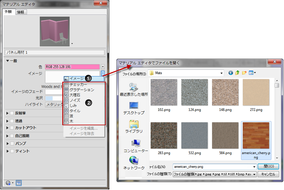 イメージ テクスチャは、イメージを使用してテクスチャを表現します。たとえば、木、コンクリートの集合、金属、カーペット、籠細工などのイメージを使用できます。