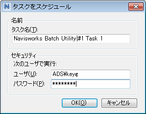 - [タスクをスケジュール]ダイアログ ボックスで、タスク名を変更し(必要であれば)、ユーザー名とパスワードを入力します。[OK]をクリックします。