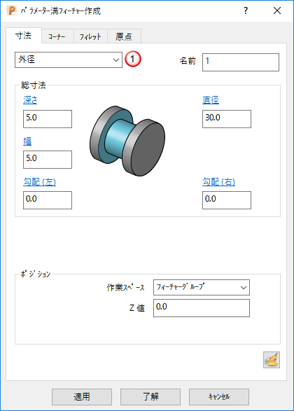 リセット - フィーチャー作成パラメーターを既定値にリセットします。