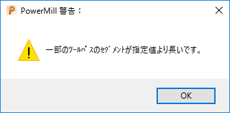 指定された 長さ 以上のセグメントがオリジナルツールパスに含まれている場合、分割操作に作成される一部のツールパスが、長さ 値を超過する場合があります。この場合、警告メッセージが表示されます。