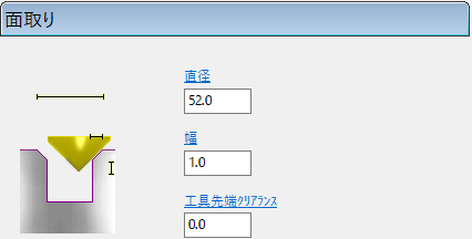 注: このページは、メイン 孔あけ ページで 操作 から 面取り を選択した場合にのみ有効になります。