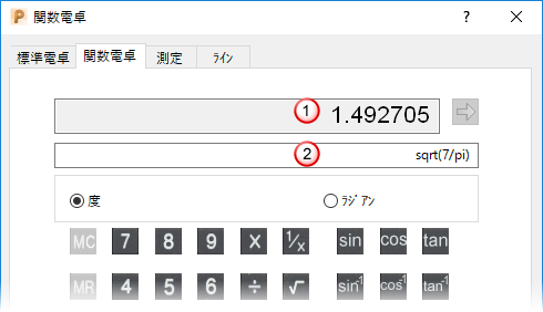 電卓 ダイアログは、[ホーム] タブ > [ユーティリティ] パネル > [電卓] をクリックして表示します。