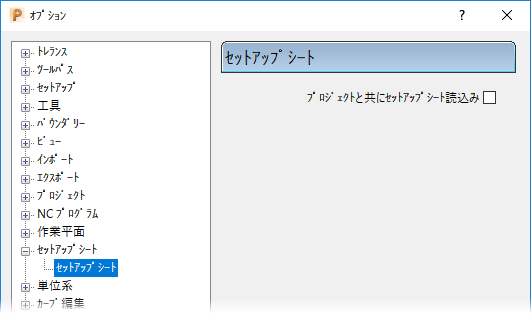 - プロジェクトと共にセットアップシート読込み オプションを選択します。