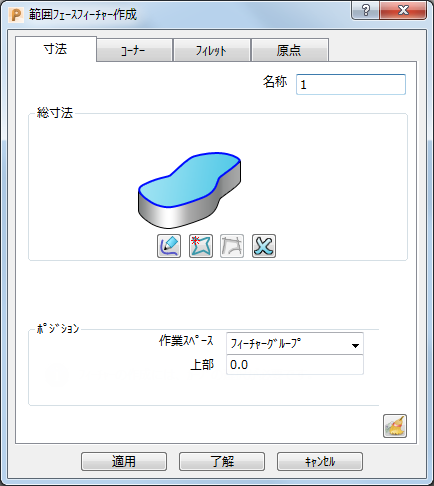 フィーチャーカーブ抽出 - アクティブパターンに、選択フィーチャーを定義するカーブを抽出します。 パターンがない場合、新規パターンが作成されます。